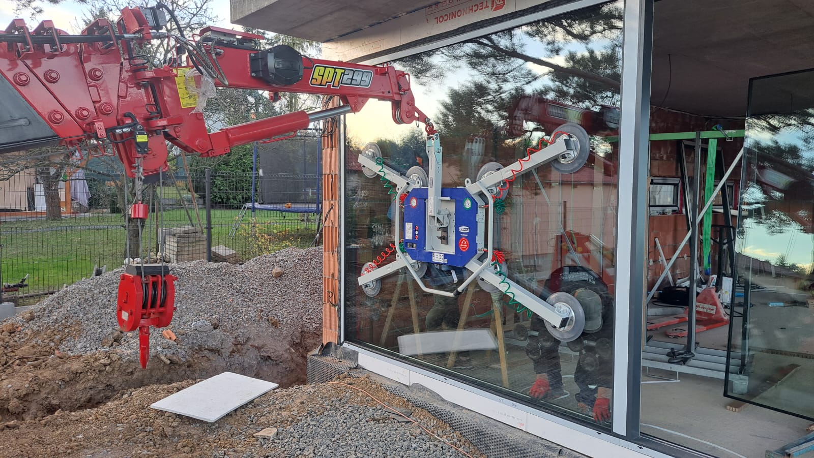 Wykorzystanie mini żurawia w naszych realizacjach pozwala na efektywny montaż stolarki okiennej, spełniając najwyższe standardy jakości i precyzji.
